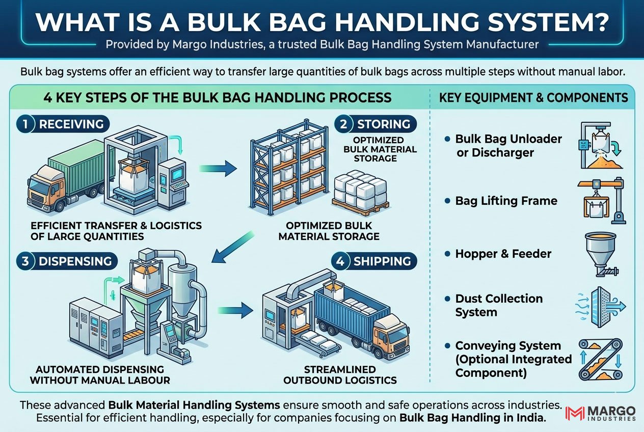 Bulk Bag Handling Systems are essential for the efficient and safe handling of bulk materials in an industrial environment, especially for companies focusing on Bulk Bag Handling in India.