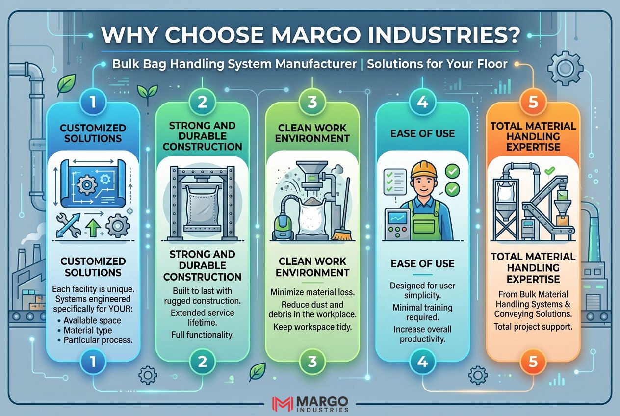 In today’s fast-paced industries, businesses need systems that are not only efficient but also reliable. That’s where our expertise in Bulk Bag Handling in India at Margo Industries comes in.