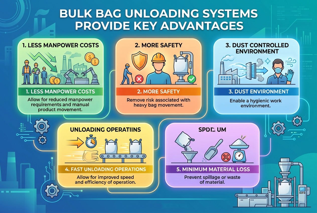 Handling heavy FIBC or jumbo bags manually can slow down operations and increase safety risks. That’s why industries today rely on a reliable Bulk Bag Unloading System.