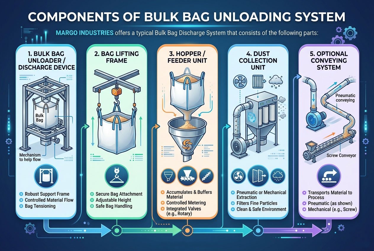 At Margo Industries, we design practical and high-performance solutions as a trusted provider of Bulk Bag Unloading System in India, helping businesses improve efficiency, reduce manual labour, and maintain a clean working environment.